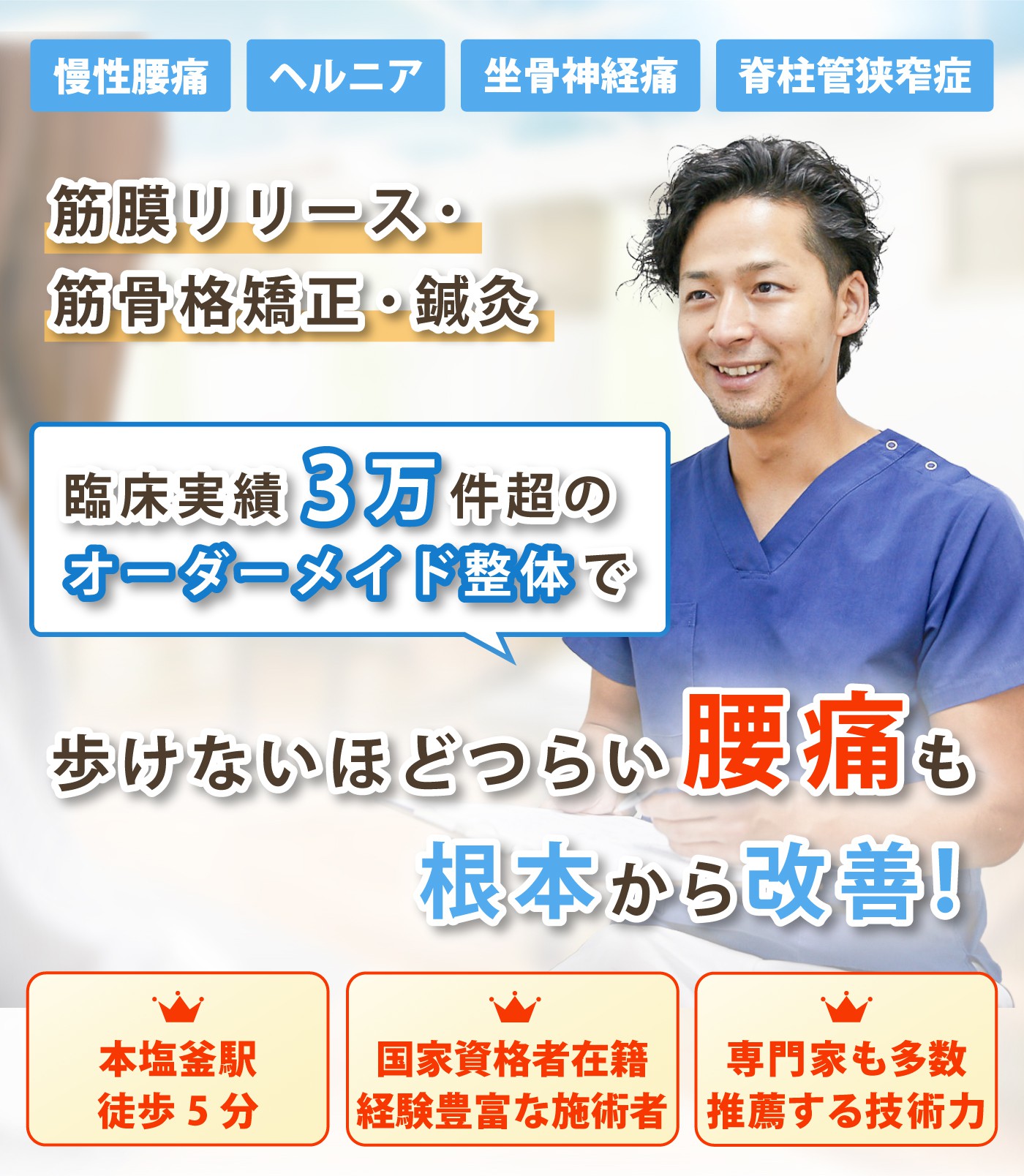 整形外科の病院や整骨院など、どこにいっても改善しない症状でお悩みならきっと力になってくれるはずです。